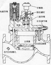 3)、閥內(nèi)采用先進(jìn)的自潔式過濾器機(jī)構(gòu),可清潔進(jìn)入導(dǎo)閥內(nèi)的控制介質(zhì),以保證導(dǎo)閥的正常工作,降低了對工作介質(zhì)清潔度要求,并具有過濾器自身清潔之功能(Ф25、Ф50為濾網(wǎng)結(jié)構(gòu))。